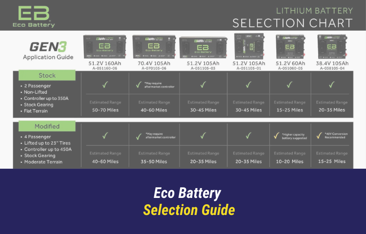 Designed for the Club Car DS/Precedent, EZGO RXV/TXT, and Yamaha Drive models (and their counterpart arrays), this Eco Battery collection upgrades the heart of your cart. Whether you’re cruising the neighborhood, managing a fleet, or chasing longer ranges across resort grounds, you’ll notice the difference in responsiveness, runtime, and peace of mind. The power‑packed LiFePO₄ cells and advanced BMS ensure you’re riding with excellence — turn heads and forget about battery downtime.