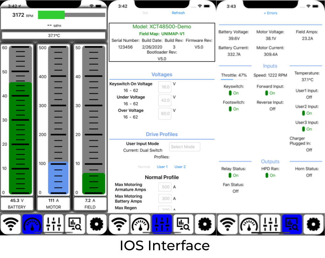 - Real-Time Monitoring – View controller temperature, motor data, and system diagnostics on demand.
