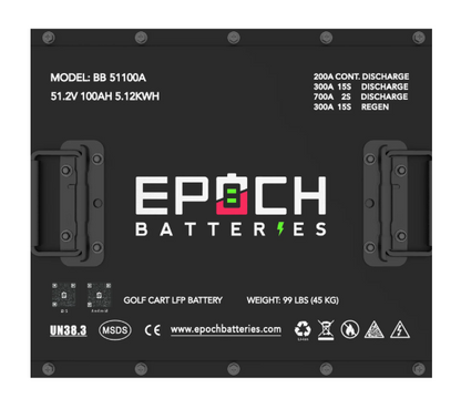 Epoch 48V 100Ah Lithium (LiFePO4) Golf Cart Battery - Complete Kit for Club Car Precedent
