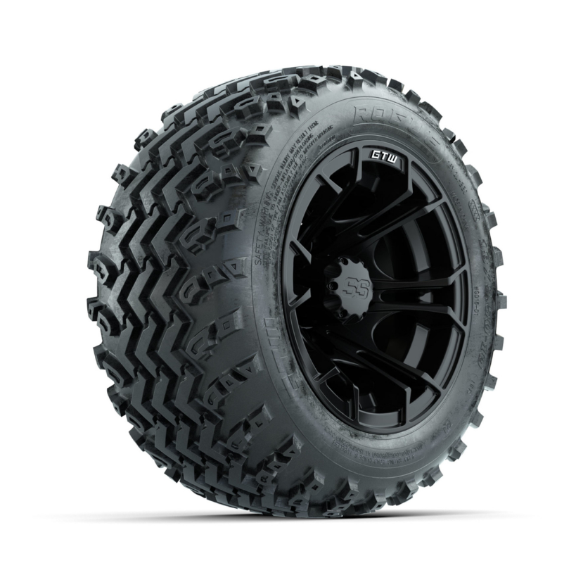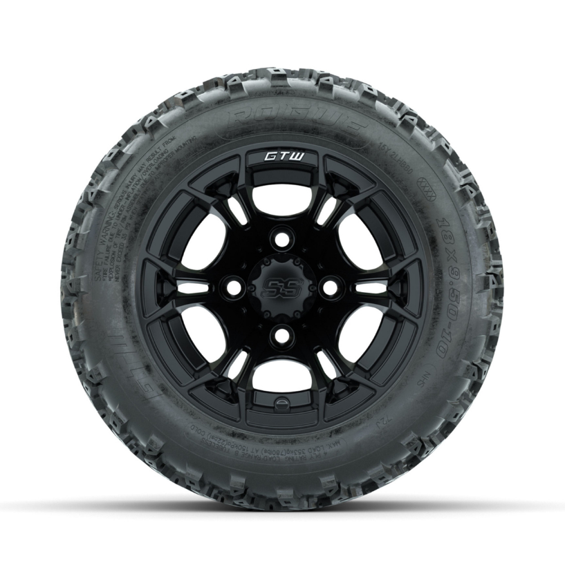 GTW Spyder Matte Black 10 in Wheels with 18x9.50-10 Rogue All Terrain Tires – Full Set