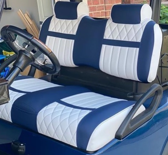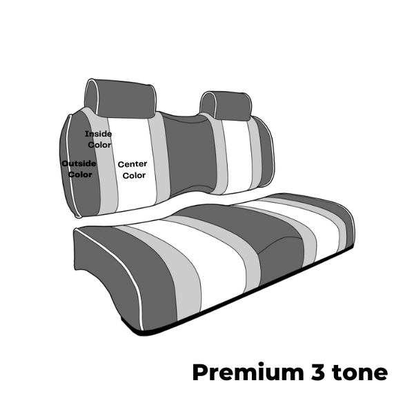 This Lazy Life Premium Front Seat with Three Tone Benchbacks is available for Club Car, Tomberlin, Evolution, Icon, EZ-GO and Yamaha Golf Carts.
