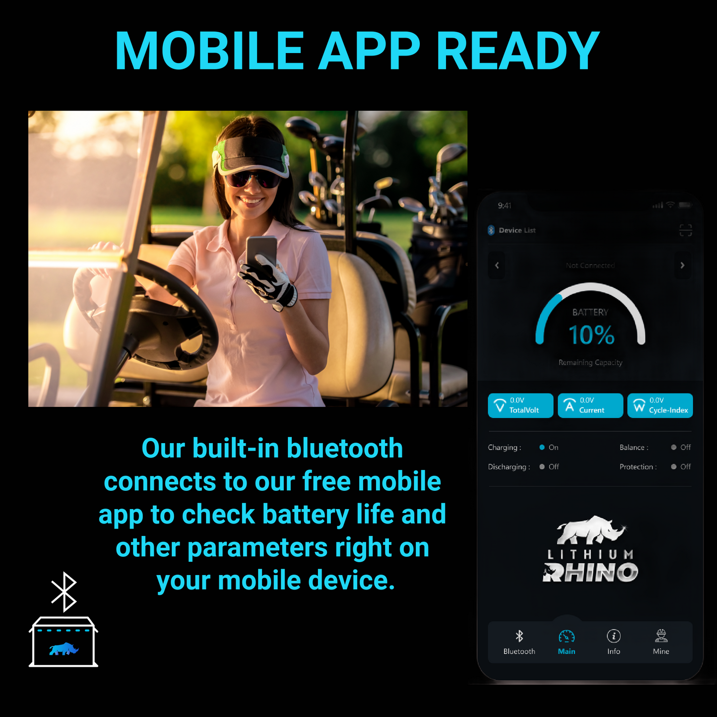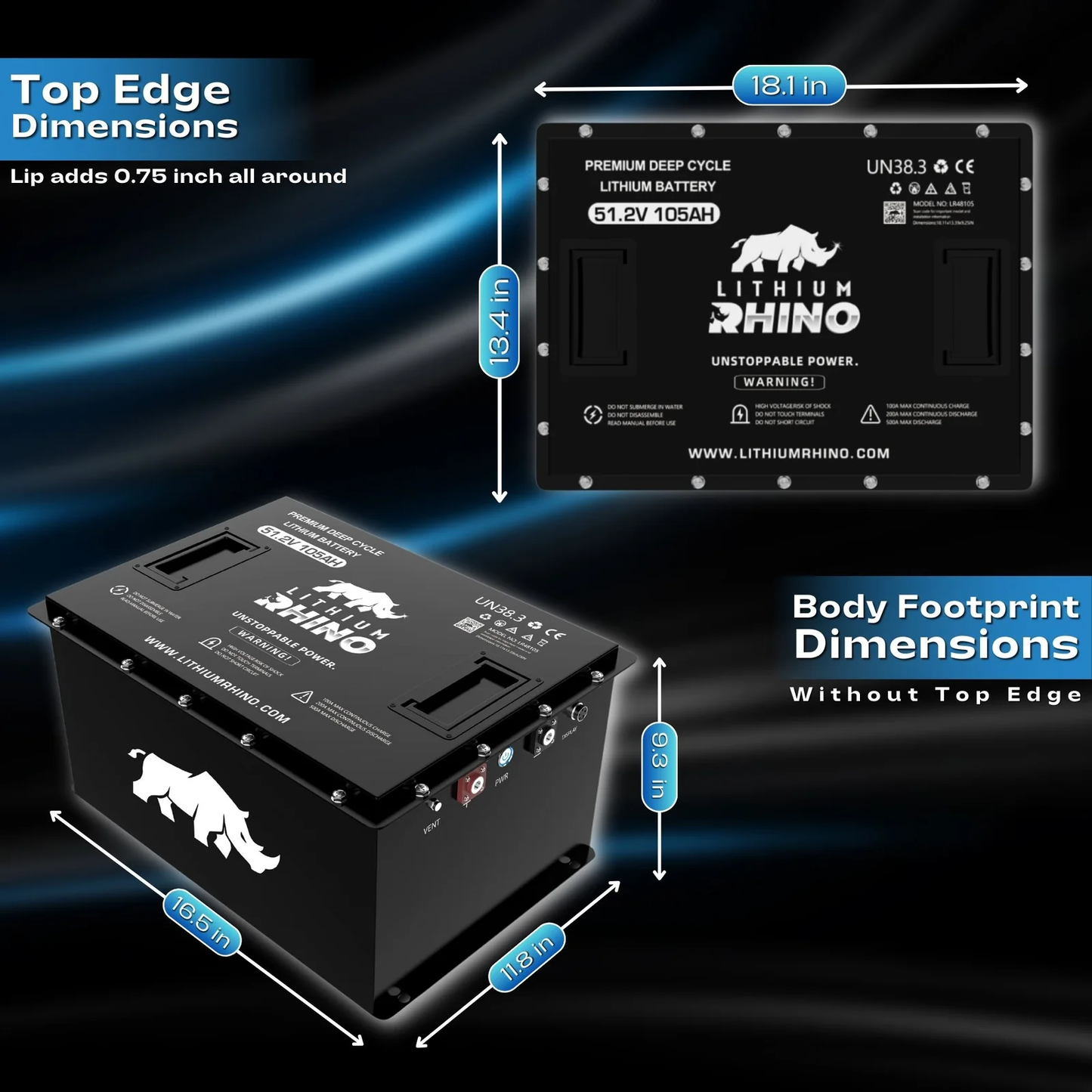 Drive faster, further, and longer in minutes with our 105ah 48V Lithium Rhino conversion kit! Our 105ah delivers 5376Kw of power and an extended drive range of 50 miles on a single charge!