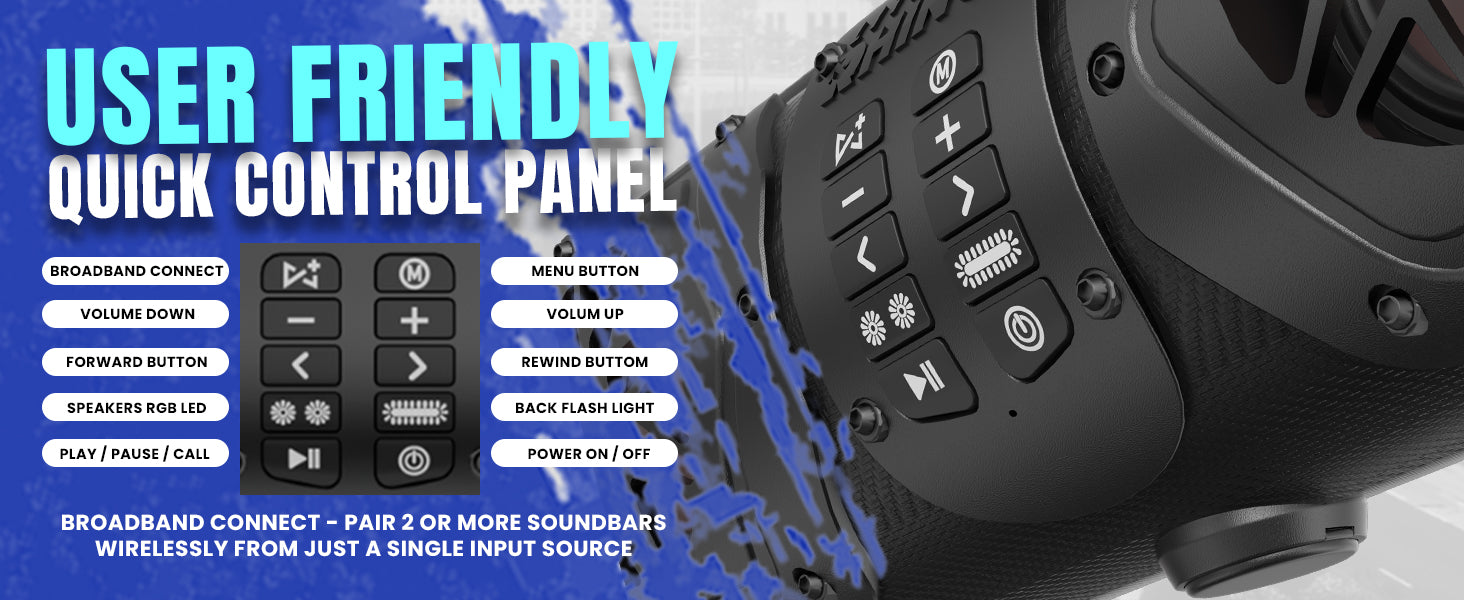 The IP67-rated, patent-pending enclosure is fully waterproof and dustproof, making this soundbar ready for the toughest terrains and weather conditions.