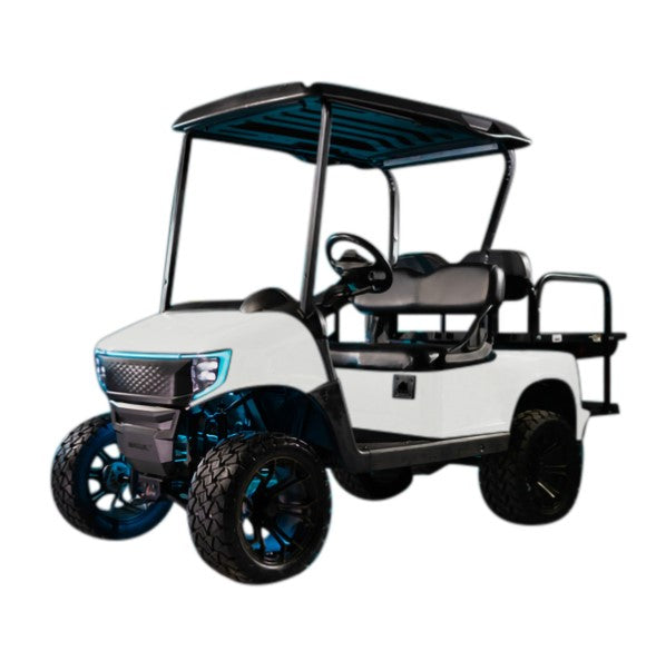 Engineered to seamlessly integrate with the E-Z-GO RXV, the Apex is designed to exceed standards and break the mold. Staying true to the innovative MadJax spirit, the Apex body stands out with its rugged styling, cutting-edge technology, and modular set up. Top-tier lighting is integrated into the design as vibrant, sequencing colors travel along the cowl.