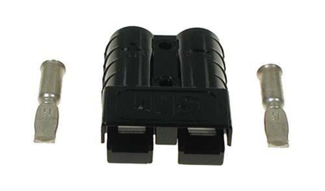 Black SB50 plug with 6 gauge contacts. For E-Z-GO electric 1983-95. (Golf Cart Side)
