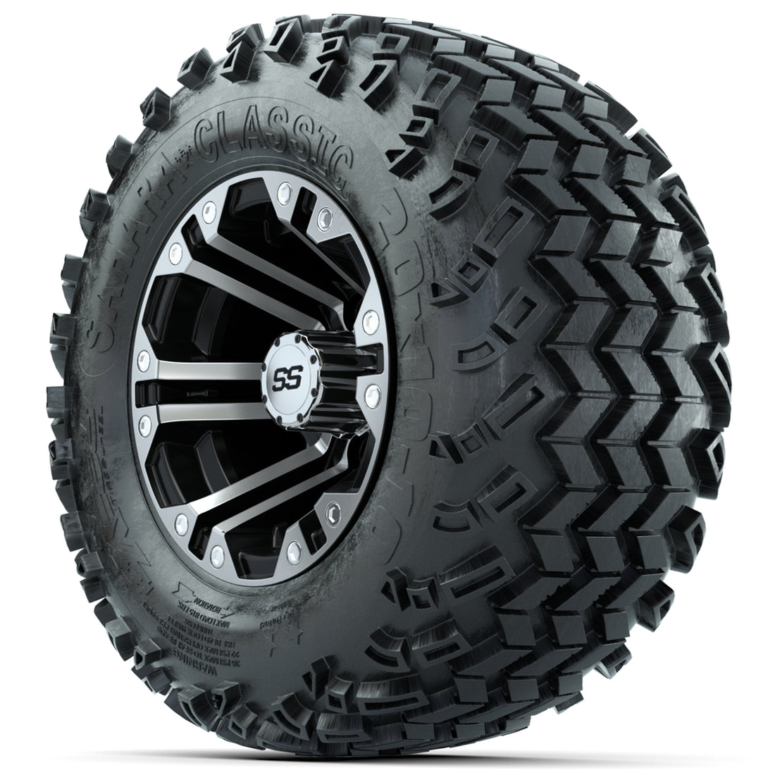 (4) 10x7 GTW Specter Wheels / Machined & Black Finish (3:4 Offset)(4) 20x10-10 Sahara Classic All Terrain Tires (4-Ply)