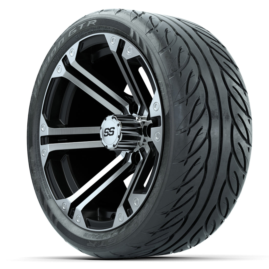 (4) 14x7 GTW Specter Wheels / Machined & Black Finish (3:4 Offset)(4) 205/40-R14 GTW Fusion GTR Street Steel Belted DOT Tires / Tire is approx. 20” tall (4-Ply)