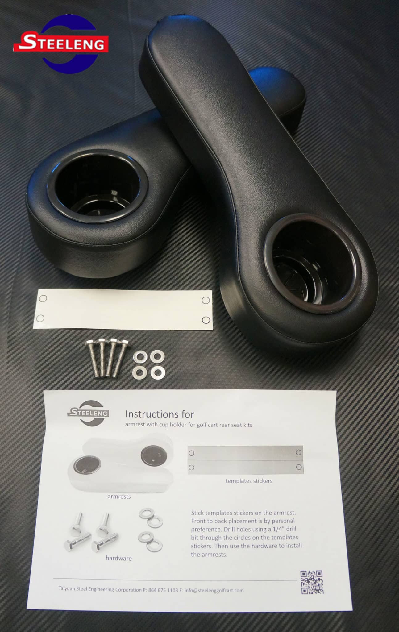 Enhance the comfort and convenience of your golf cart with the SGC Golf Cart Rear Seat Armrest Cushion w/ Cup Holder in Black. Designed for practicality and style, this set of armrests is perfect for your golf cart’s rear seat.