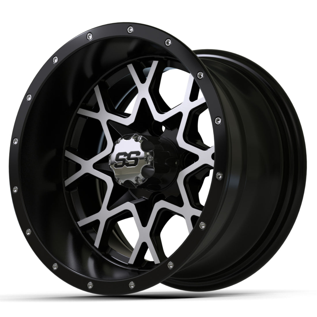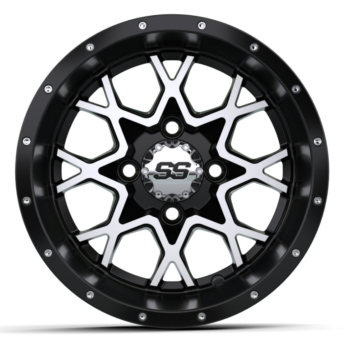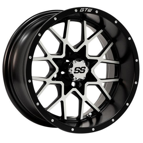 GTW® 12x7 Vortex Wheel now available in a Matte Black & Machined finish. It is constructed of solid cast aluminum for maximum strength and minimum weight. The GTW® Vortex wheel offers an exclusive GTW® Mesh-Spoke design, deep rim lip, and two-piece look chrome studs. The Vortex pairs great with our premium line of tires and accessories.
